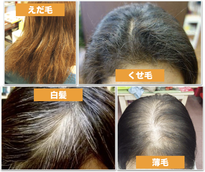 白髪、抜け毛、ダメージケアが出来る