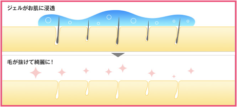 浸透した制毛成分が毛を細くしていき、毛が抜ける仕組みになっています。