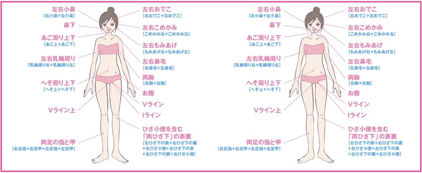 そして、他のサロンは全身の脱毛箇所が30ヶ所前後に対し、脱毛ラボは全身56ヶ所も脱毛できます!