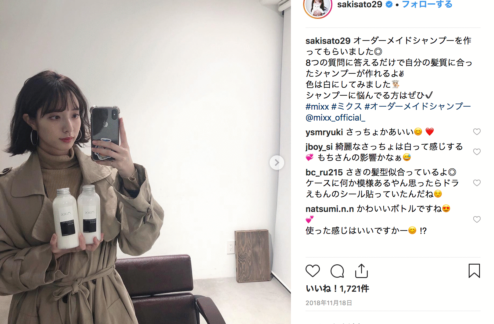 若い頃から髪を脱色したりパーマをあてたりと髪にかなり負担をかけていたせいで枝毛だらけのゴワゴワ髪でした。どんな高いトリートメントを買っても朝にはまた戻っていたのに、自分専用に調合したmixxを使い始めてからはしっとりキレイな髪になりました!ゴワゴワだった髪がこんなに生き返るなんて嬉しくて、インスタに投稿したらめっちゃいいねされたんでビックリです!w